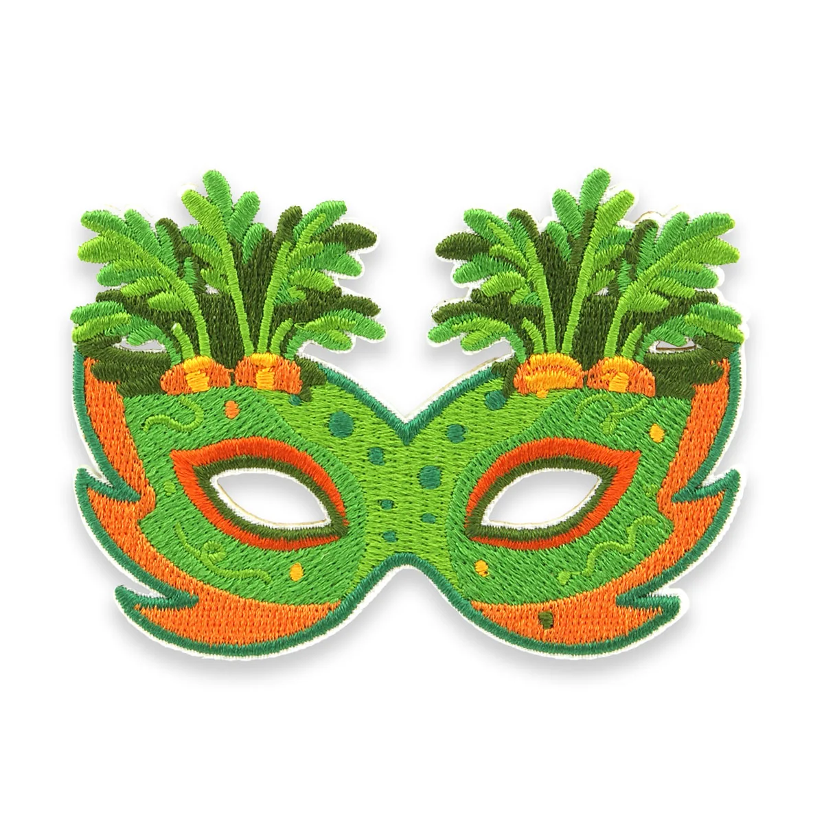 Met deze masker patch voeg je een vleugje mysterie toe aan je carnavalsoutfit. Het speelse ontwerp in de herkenbare groen-oranje Peeënrijkse kleuren doet denken aan gemaskerde bals, geheimzinnigheid en natuurlijk het ultieme carnavalsgevoel.
